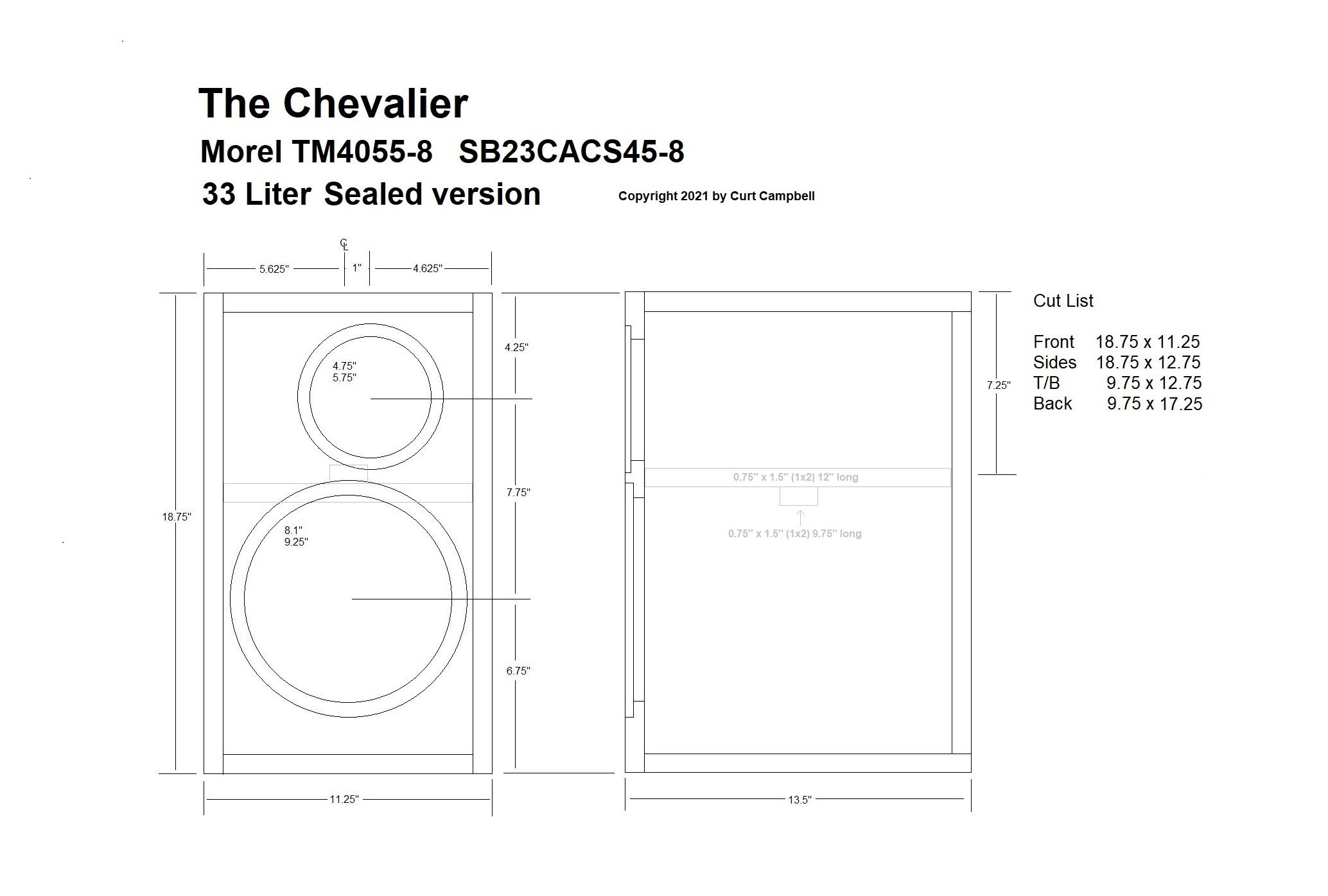 The Chevalier is a modern take on a traditional 8 ohm 3-way. The high & midrange frequencies are covered by the unique Morel TM4055-8 Soft Dome Tweeter-Midrange combo and bass duty is handled by the SB Acoustics SB23CACS45-8 8" Ceramic Cone Woofer. This is easily one of the best 8" bass drivers we carry, regardless of cost.