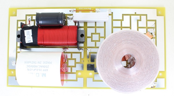 Each crossover is professionally assembled by Madisound on our silver tinned inlaid OFC copper circuit boards. The woofer section is on a 103B Circuit Board, the midrange section is on a Matrix Double Circuit Board, and the tweeter section on a Matrix Circuit Board. The woofer and tweeter board can be mounted on the plint at the bass of the speaker cabinet. The midrange board can mount to the side wall right above that area, below the brace at the bottom of the woofer chamber. Crossosvers using the Goertz Copper Foil 12awg inductor are on larger boards, one is mounted to the plint and the others on the side walls above that area.