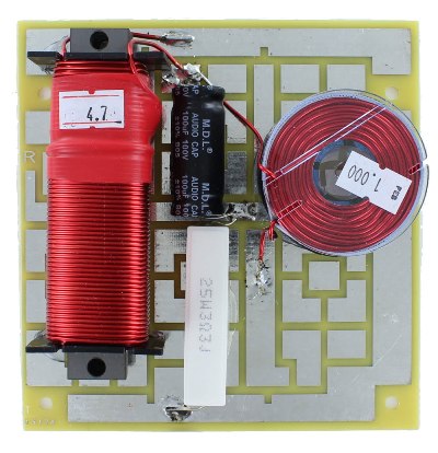 ClarityCap CSA Cap, Mundorf CopperNickel resistor, and air core inductor in series. Poly cap, air core indcutor, and Murndorf MOX resistor in parallel.