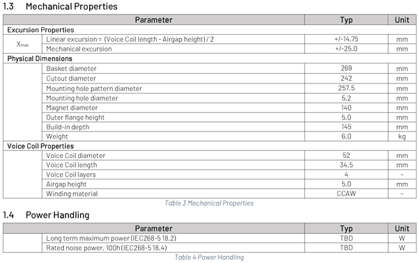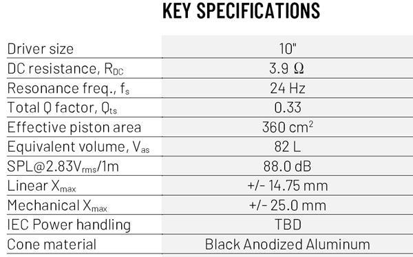 PTT10.0X04-NAB-01 10" Low Distortion Aluminum Cone Woofer- 269mm- 4 ohm- 88 dB