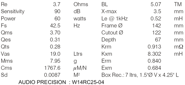 Silver Flute W14RC25-04 5.5" Woofer Wool Cone 4 ohm