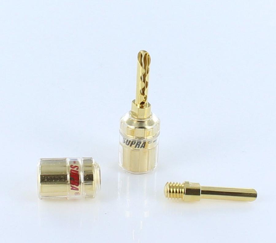 The Supra CombiCon allows for changing contacts from BFA/banana to Fork in a blink of an eye. And back again for that matter, providing for exceptional freedom and flexibility for any new demand. Electrically, the Supra CombiCon matches any of our cables and the design specification was clear-cut, it must not be a bottleneck for our Supra Sword speaker cable. Rest assure, there is not any contact, making a better job for Supra cables, even though there are much more expensive.