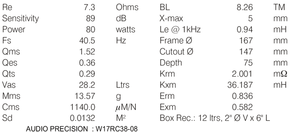 I had a pair of .75 cu ft MTM cabinets lying around from a years old non-finished project. I also had a pair of these Silver Flute W17RC38-08 woofers not used. I decided to order another pair of the Silver Flutes and, using some old Euro tweeters assemble the speakers s a MTM design just to see what they would sound like. I crossed them over at 2 khz. They did not sound too bad at all.
